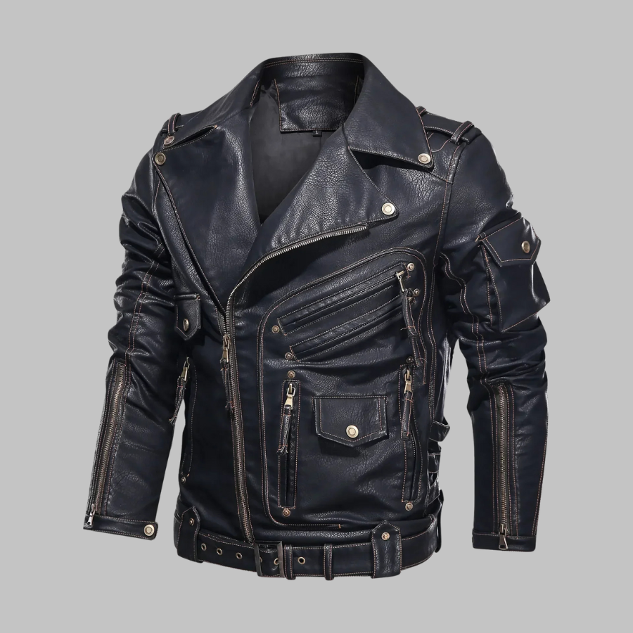 Miesten musta keinonahkainen rock-biker-takki Katso vaihtoehdot