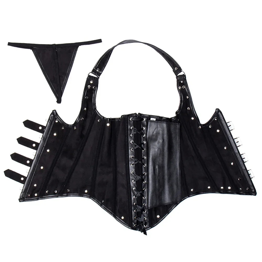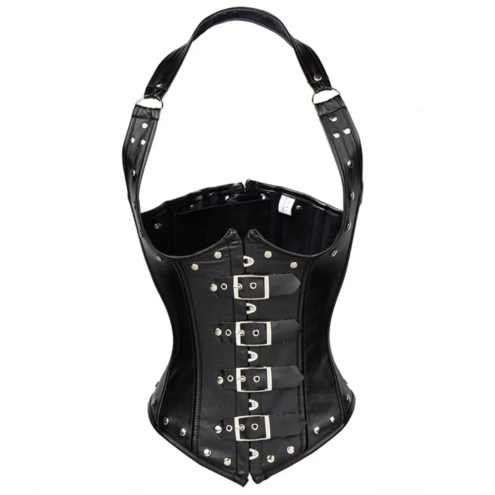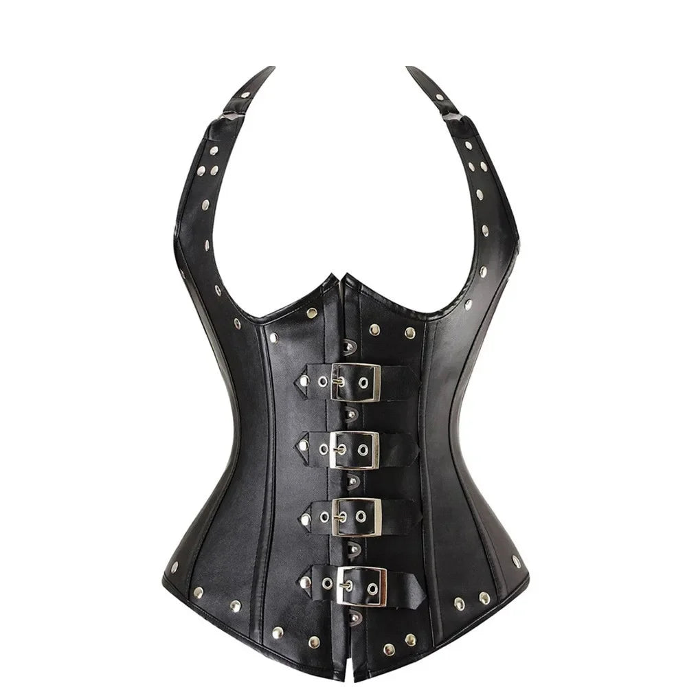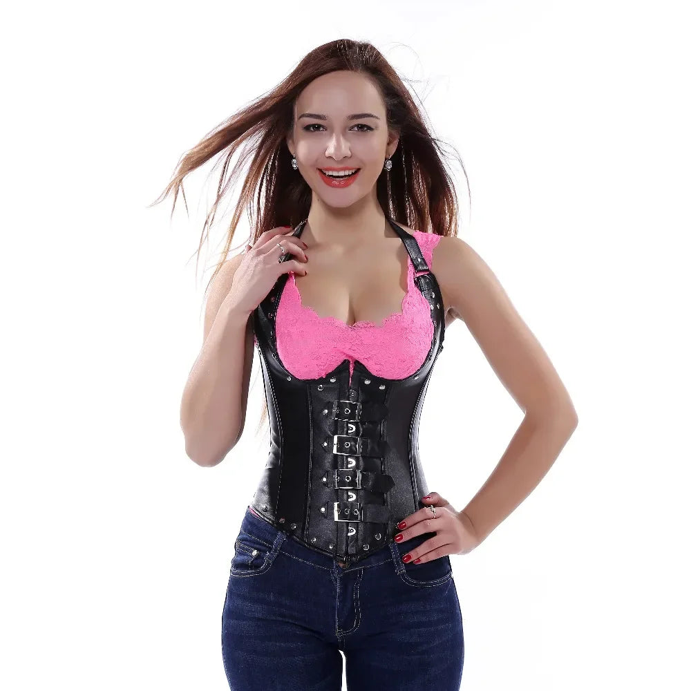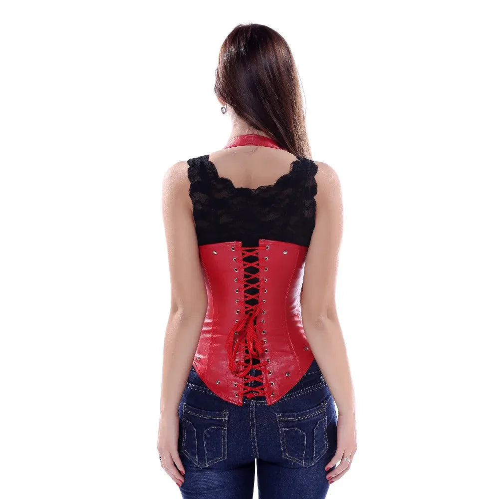 Punainen keinonahkainen korsetti soljilla – punk rock -tyyliä naisille Katso vaihtoehdot